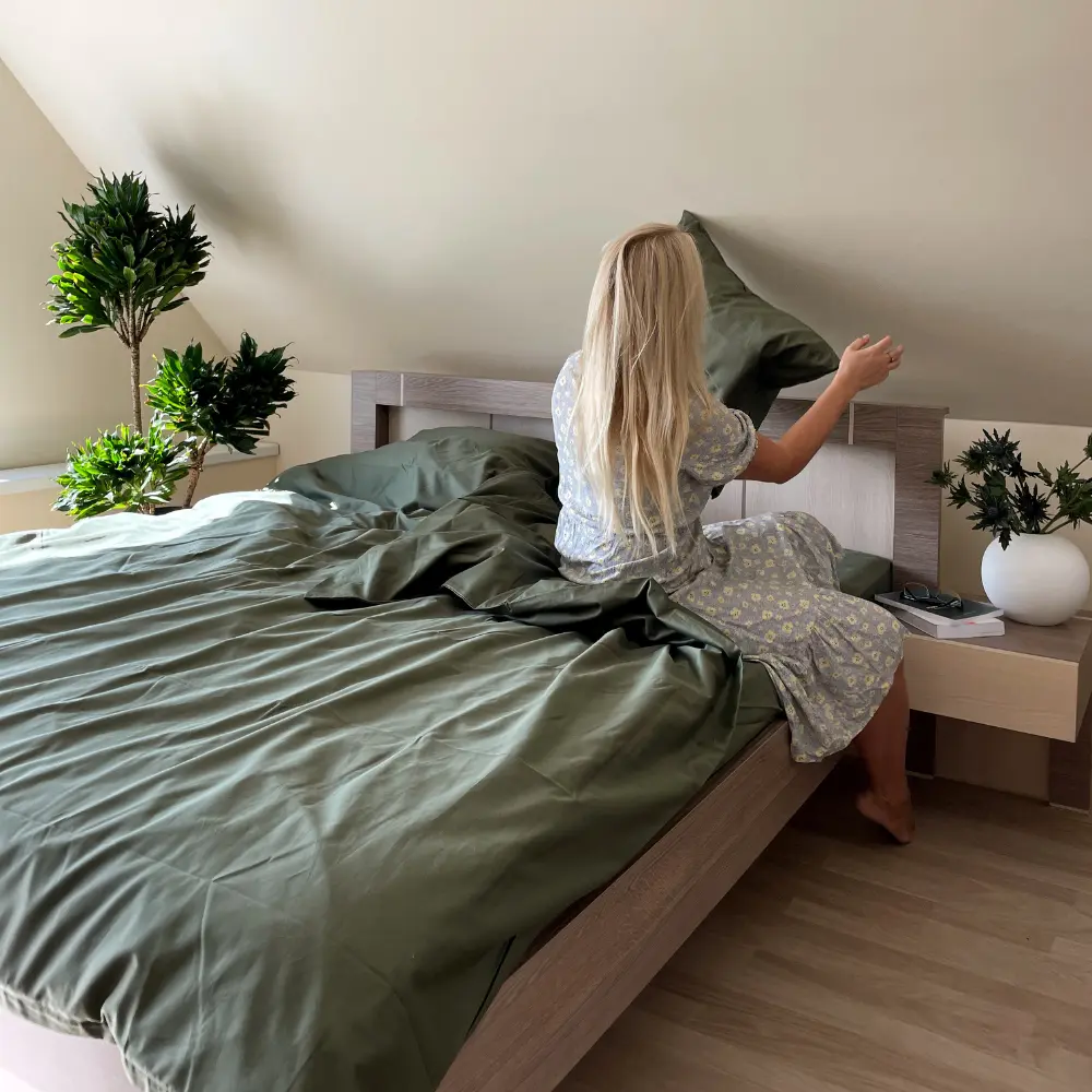 To ensure that no material is wasted, we pack our bedding in fabric bags made from leftover fabrics, recycled, or plant-based bags. When you unpack the package, the only thing thrown away is the cardboard box, which biodegrades in three to six months.