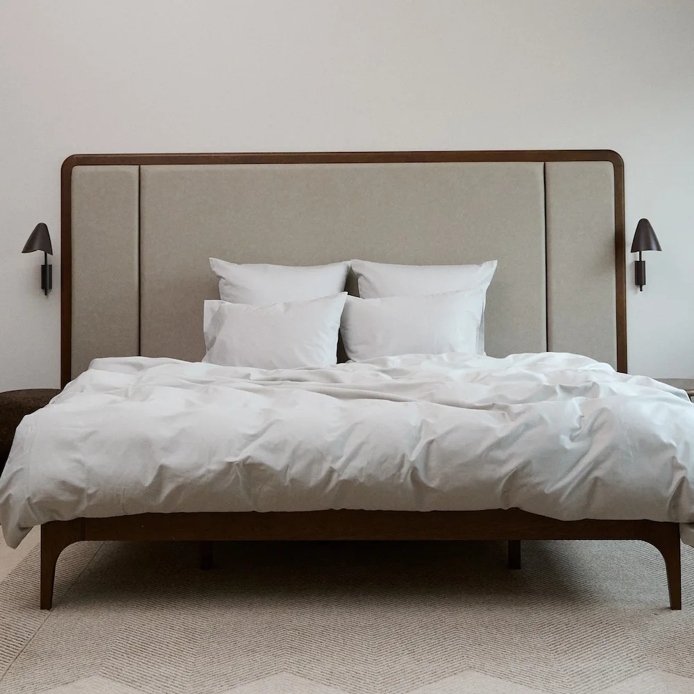 Effortless duvet cover with a full-length hidden zipper; fitted sheet with a 'Long Side' label for easy bed-making; and a modern pillow envelope closure to keep it in place.