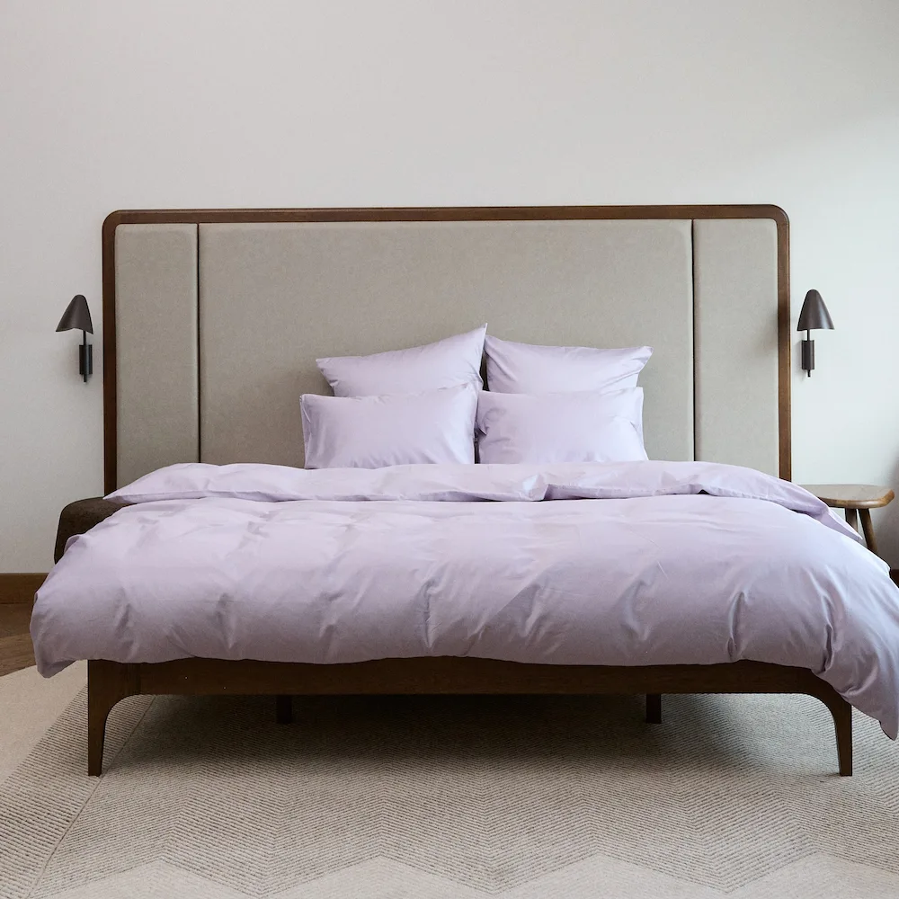 Effortless duvet cover with a full-length hidden zipper; fitted sheet with a 'Long Side' label for easy bed-making; and a modern pillow envelope closure to keep it in place.